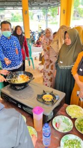 Beberapa peserta berkesempatan ikut memasak di depan, sementara yang lain memperhatikan dan mencatat resep.